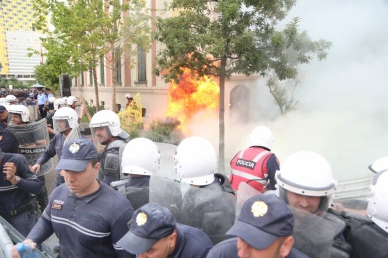 Lajme Tensionohet situata para Bashkisë Tiranë, protestuesit hedhin sërish molotov drejt godinës, tentojnë të thyejnë gardhin rrethues 📅 14.05.2024 👁 0