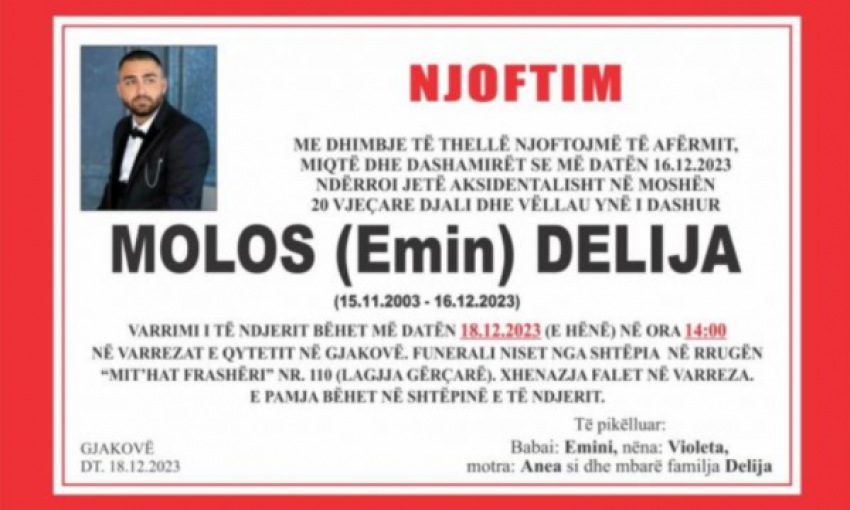 Lajme Sot i jepet lamtumira e fundit 20-vjeçarit qĂ« u godit pĂ«r vdekje nga vetura nĂ« autostradĂ« đ 18.12.2023 đ 0