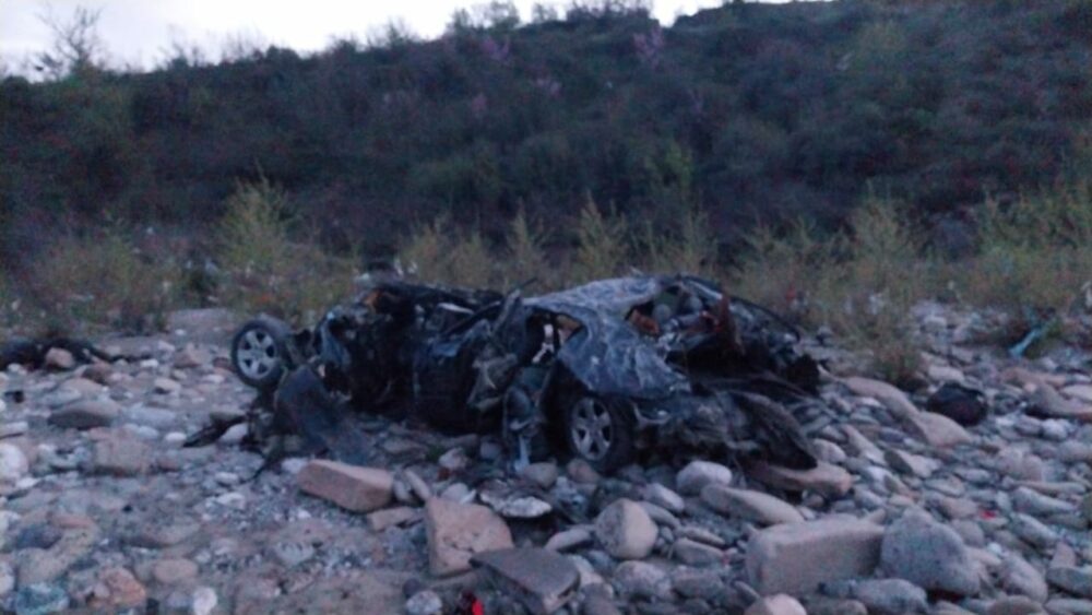 Siç shihet nga pamjet ajo çka ka mbetur nga makina është një grumbull inertesh, pasi mjeti është shkatërruar totalisht nga përplasja që ka rezultuar fatale për personat që udhëtonin në të.