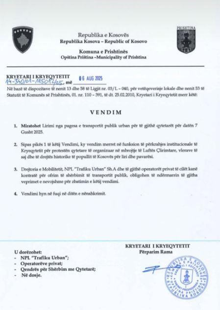 Kryetari i Prishtinës, Përparim Rama, ka vendosur t’i lirojë pa pagesë të gjithë autobusët për nesër.