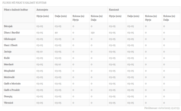 Kështu bëhet e ditur në përditësimin e bërë në ora 15:27 nga Qendra Kombëtare për Menaxhim Kufitar.