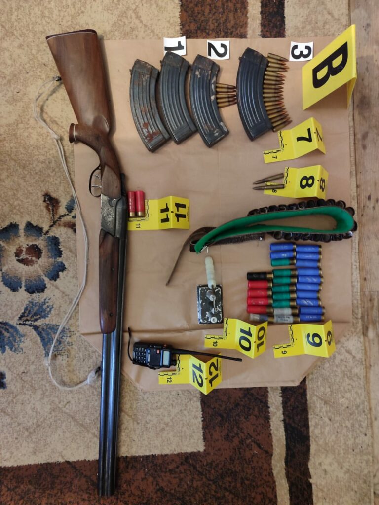 “Me datë 13.05.2024 DHTN në fshatin Zamenicë Komuna e Leposavicit ka realizuar një bastisje të shtëpisë dhe objekteve përcjellëse të personit të dyshuar mashkull kosovar, ku gjatë kontrollit janë gjetur dhe sekuestruar: 6 (gjashtë) qese me sasi të substancës së dyshuar të llojit Marihuanë me peshë rreth 260gram, 1 (një) pushkë gjuetie dy tytëshe me 26 fishekë, 4 (katër) karikatorë të armës së gjatë AK-47 me gjithësej 23 fishekë, 1 (një) radiolidhje.”, thuhet në njoftim.