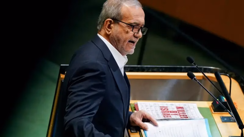 Presidenti iranian Masoud Pezeshkian, gjatë fjalimit të tij në Asamblenë e Përgjithshme të OKB-së, u rikthye te sulmet izraelite ndaj Iranit në muajin qershor, të cilat çuan në një konflikt 12-ditor mes dy vendeve.