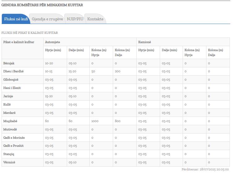 Qendra Kombëtare për Menaxhim Kufitar ka përditësuar të dhënat e fundit.