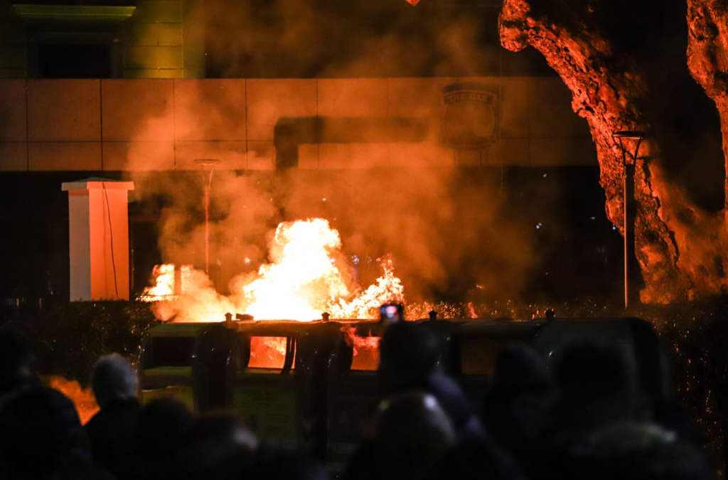 “Si pasojë janë shkaktuar dëmtime në këtë godinë, si dhe janë dëmtuar 32 kosha mbeturinash të vendosura nga Bashkia Tiranë. Në cilësinë e provës materiale janë sekuestruar objekte dhe sende të hedhura (molotovë dhe lëndë piroteknike), të cilat janë dërguar për ekspertime të mëtejshme kriminalistike”, njoftoi policia.