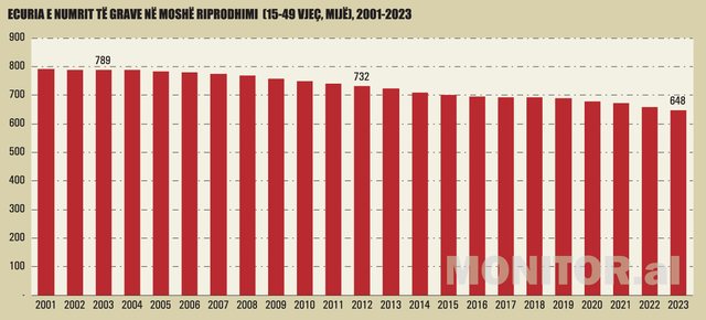 Vitin e kaluar lindën pak më shumë se 22 mijë foshnja, teksa numri i grave në moshë riprodhimi ishte 647,884, ose tre herë më i lartë se në vitet 1950.