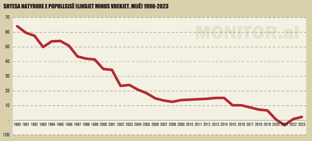 Skenari pesimist për ecurinë e popullsisë deri në vitin 2060 i zhvilluar nga INSTAT parashikonte që në vitin 2023, të lindnin 27,281 foshnja, por në realitet kanë lindur vetëm 22,210, ose 19% më pak se pritshmëritë më pesimiste.