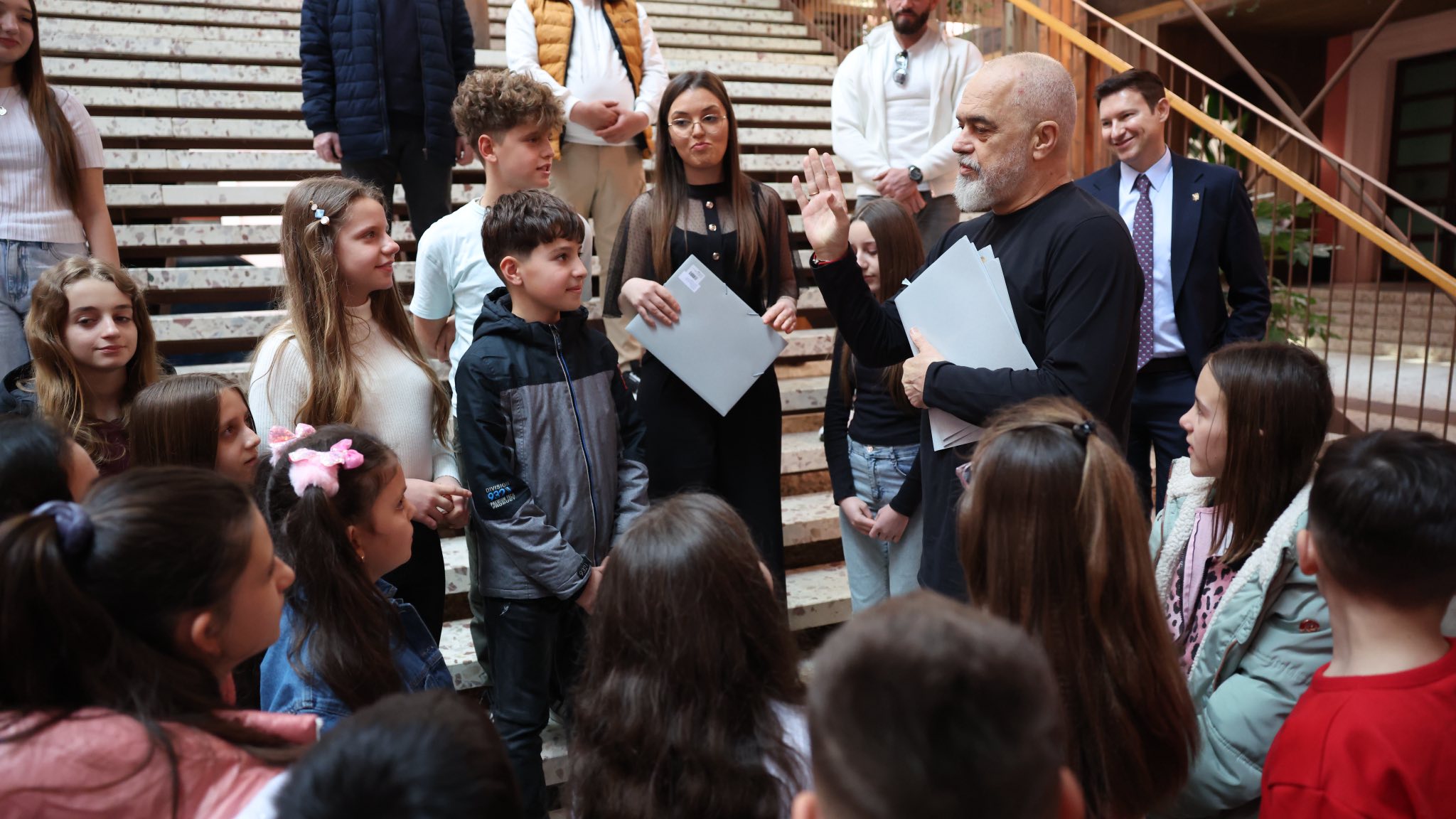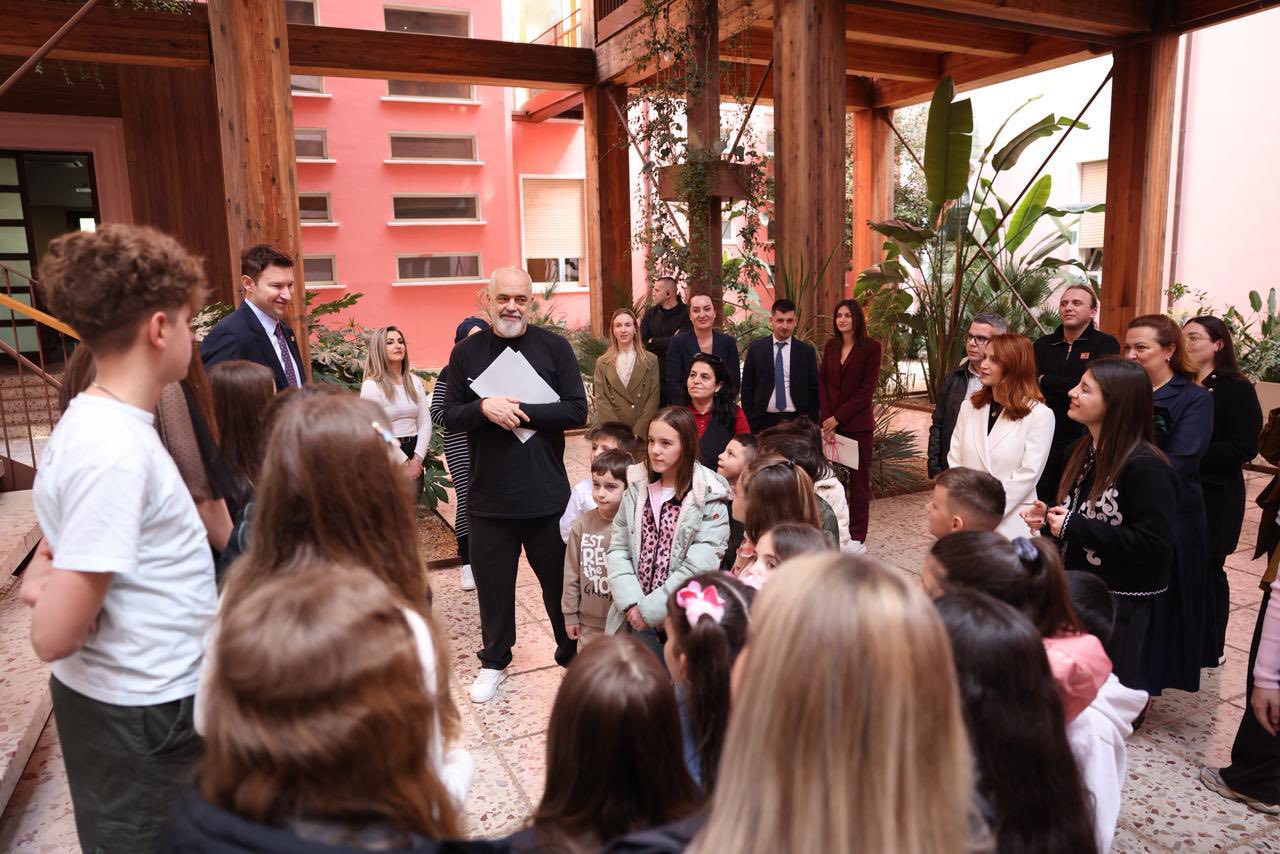 Në një postim në rrjetet sociale, kreu i qeverisë ka publikuar disa foto me fëmijët shqiptarë nga Manastiri i Maqedonisë së Veriut, që kanë qenë të pranishëm në kryeministri.