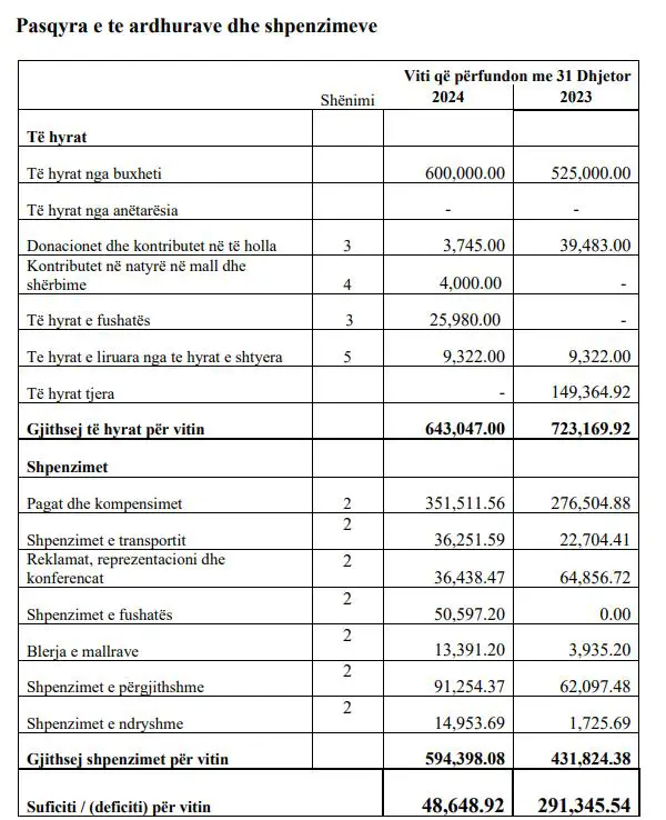Ndërkaq, totali i shpenzimeve është afro 595 mijë euro.