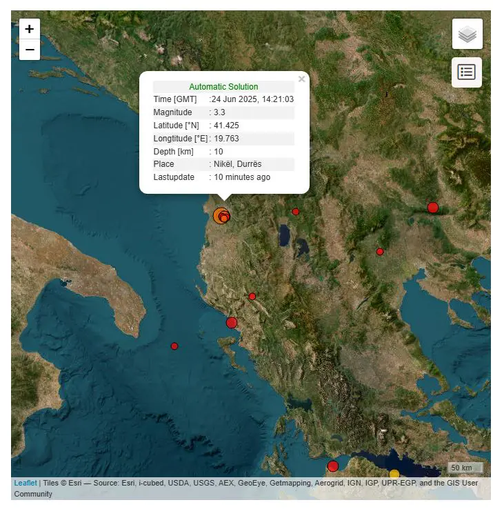 Sipas të dhënave të publikuara nga Instituti i Gjeoshkencave (IGEO), epiqendra e tërmetit është regjistruar, pranë zonës së Nikël në Durrës, në një thellësi prej vetëm 10 kilometrash.