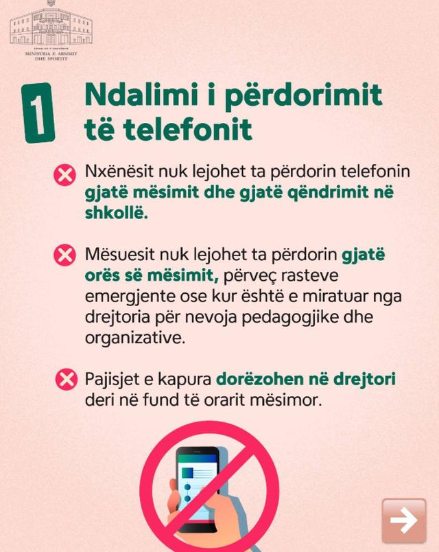 Rregullorja e re kërkon bashkëpunim me prindërit për këtë proces dhe parashikon edhe veprimet që duhet të ndërmerren në raste të veçanta kur duhet përdorur telefoni.