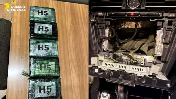 Kontrolli menjëherë zbuloi gjendjen e keqe të pultit, me ndërhyrje të dukshme në ekranin e makinës (paketa elektronike e saj). Pas tij, një inspektim i plotë zbuloi një fund të rremë që përmbante pesë blloqe kokaine që peshonin mbi pesë kilogramë në total, me një vlerë të vlerësuar në rrugë prej gjysmë milioni eurosh. Çdo bllok vlen 100,000 euro (rreth 70-80 euro për gramë), informon media italiane.