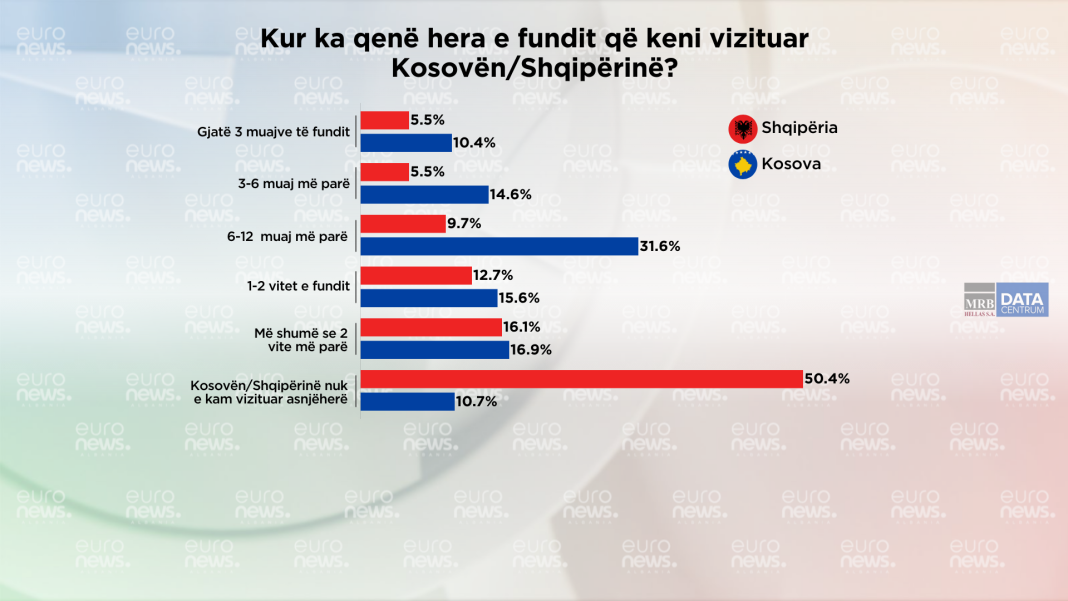Nga sa duket edhe nga shifrat, është e qartë se lëvizjet e qytetarëve nuk janë edhe aq të shpeshta, sepse opsionin që të kenë vizituar vendet respektive në 3 muajt e fundit e kanë zgjedhur si përgjigje vetëm 5.5% e shqiptarëve në Shqipëri dhe 10.4% e qytetarëve në Kosovë.