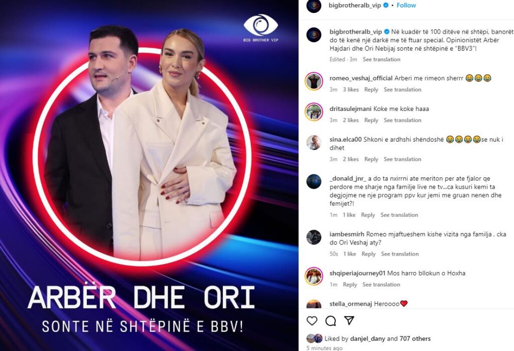 Mbrëmja e sotme, e cila përkon me 100 ditët e banorëve brenda ‘Big Brother VIP Albania 3’ do shoqërohet me një surprizë. Themi këtë pasi sonte, futet në shtëpi Ledion Liço, prezantuesi i këtij formati dhe opinionistët Ori Nebiaj dhe Arbër Hajdari. Kjo u bë e ditur nga vetë faqja zyrtare e Big Brother në Instagram.