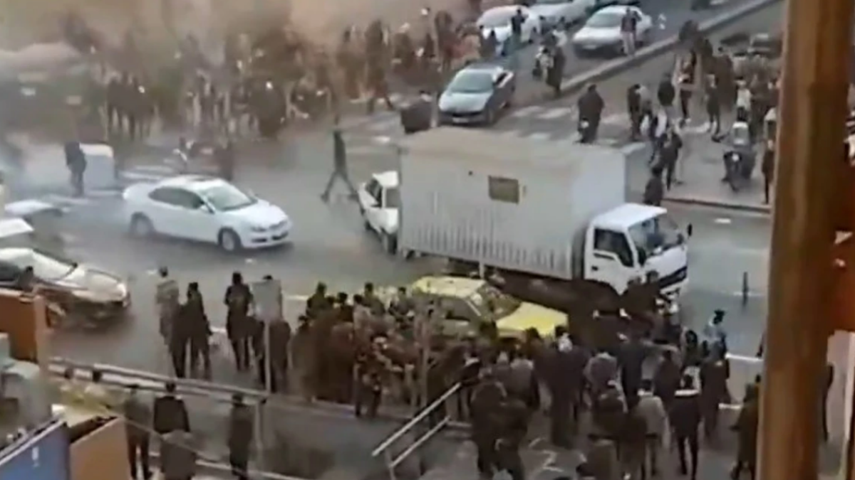 Studentët shihen duke marshuar në rrugë, duke brohoritur dhe duke mbajtur pankarta që shprehin mbështetje për Princin e Kurorës, Reza Pahlavi, dhe duke thënë se ai do të rikthehet.