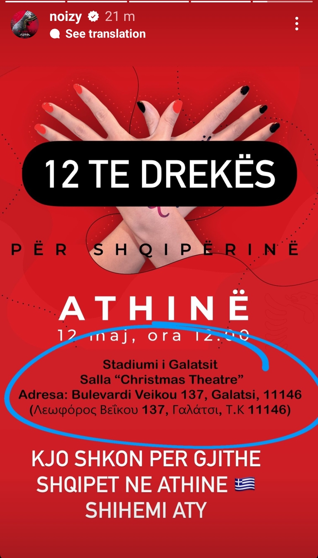 Por surpriza e këtij eventi përpos faktin se pritet të jenë mijëra shqiptarë atje është se do të performojë edhe këngëtari i famshëm Noizy. Lajmin e ka bërë me dije vete Noizy i cili ka shpërndarë në instagram posterin me vendin ku do të performojë me date 12 maj, ora 12:00.