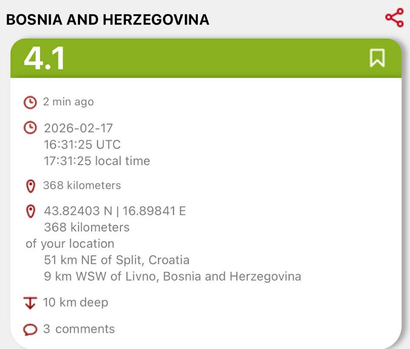 Një tërmet sapo ka goditur Bosnjë Hercegovinën.