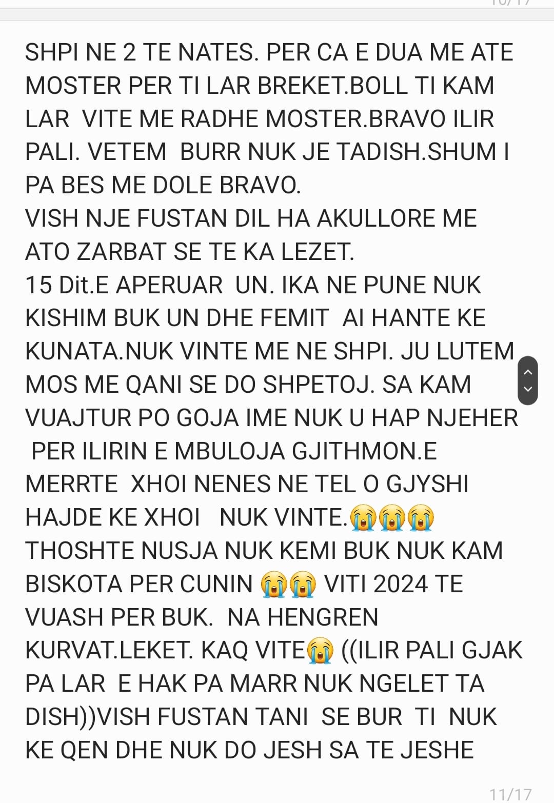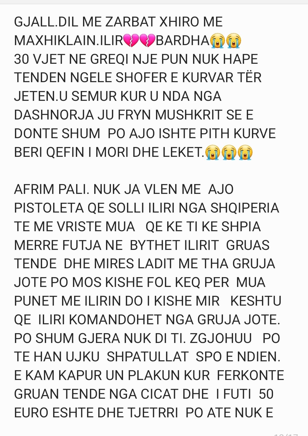 47-vjeçarja shkruan se sherret mes tyre kanë qenë shumë të shpeshta dhe se njëherë, Iliri kishte marrë nga Shqipëria një armë për ta vrarë, por e kishte ndaluar vëllai i tij Afrimi.
