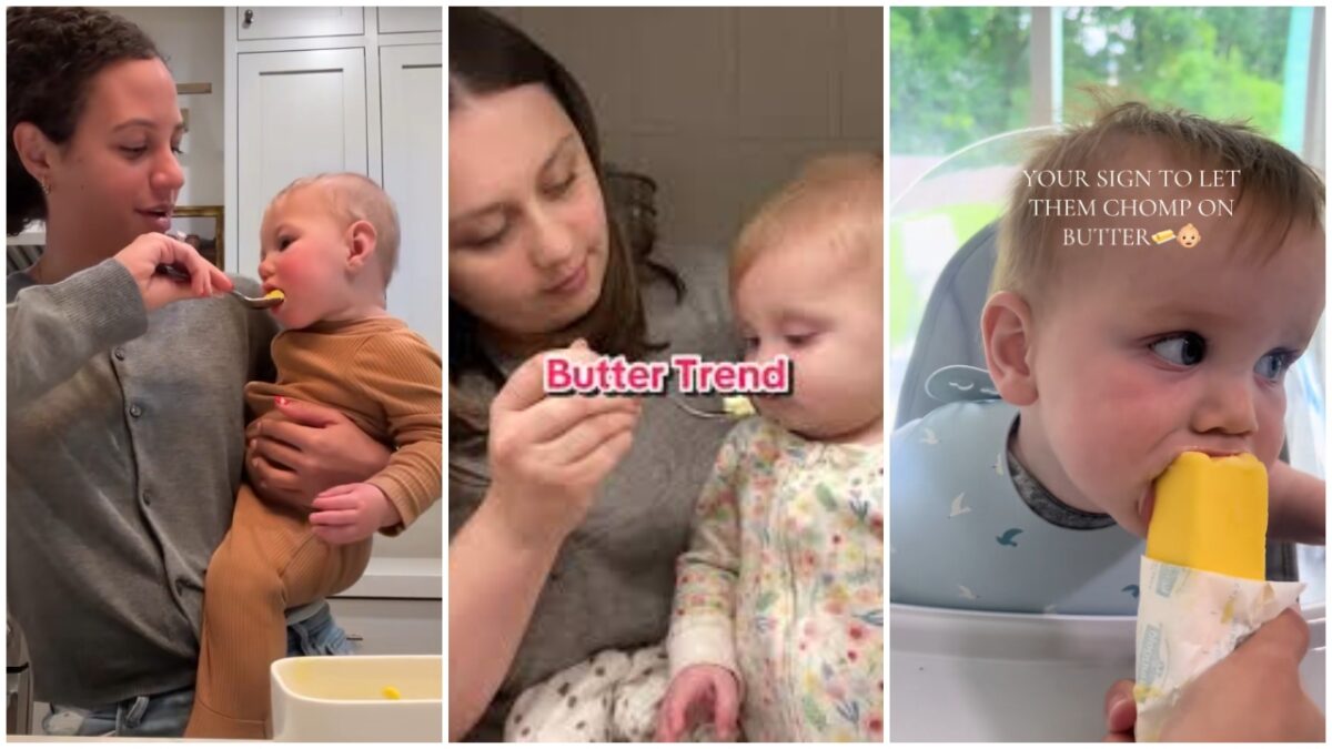 Një trend i ri po qarkullon në TikTok midis prindërve: ushqyerja e foshnjave me gjalpë. Në disa video, prindërit japin gjalpë të plotë, organik, direkt në dorë ose në gotë, duke pretenduar se kjo ndihmon foshnjat të ndihen më të ngopura, të flenë më mirë dhe të rriten shëndetshëm. Disa prindër madje përziejmë gjalpin në qumësht para gjumit, ose sugjerojnë se mund t’u jepet sasi e pakufizuar deri në dy vjeç.