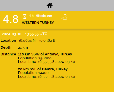 Raportohet se tërmeti ka qenë me magnitudë 4.8 i shkallës rihter, me epiqendër në zonën detare në jugperëndim të Antalias.