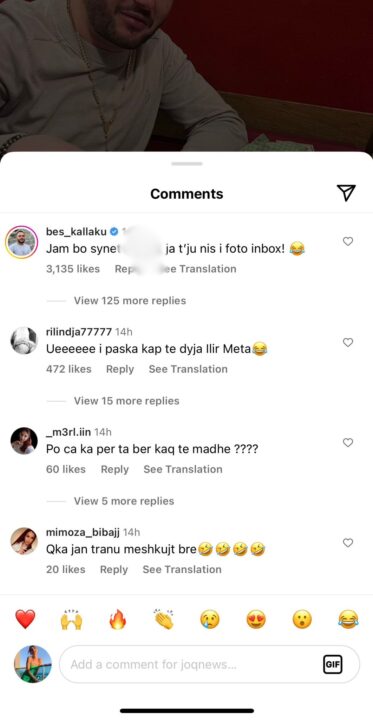 “Jam bërë synet, ja t’jua nis një foto në inbox”, ka shkruar këngëtari, koment të cilin e ka shoqëruar me ikonat e të qeshurës.