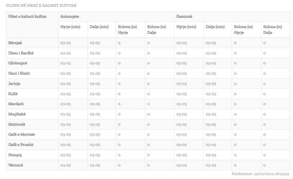 Gjithashtu sipas të dhënave të Qendrës Kombëtare për Menaxhim Kufitar, nuk ka kolona nëpër pikëkalimet kufitare.
