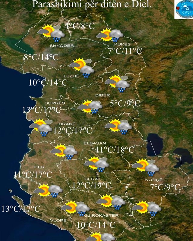 Ditën e Diel depërtimi i masave ajrore të lagështa do të bëjë që të kemi paqëndrueshmëri, mot të vranët dhe reshje shiu me intensitet të ulët deri mesatar që nisin që në orët e para të 24 orëshit deri orët e mëngjesit.